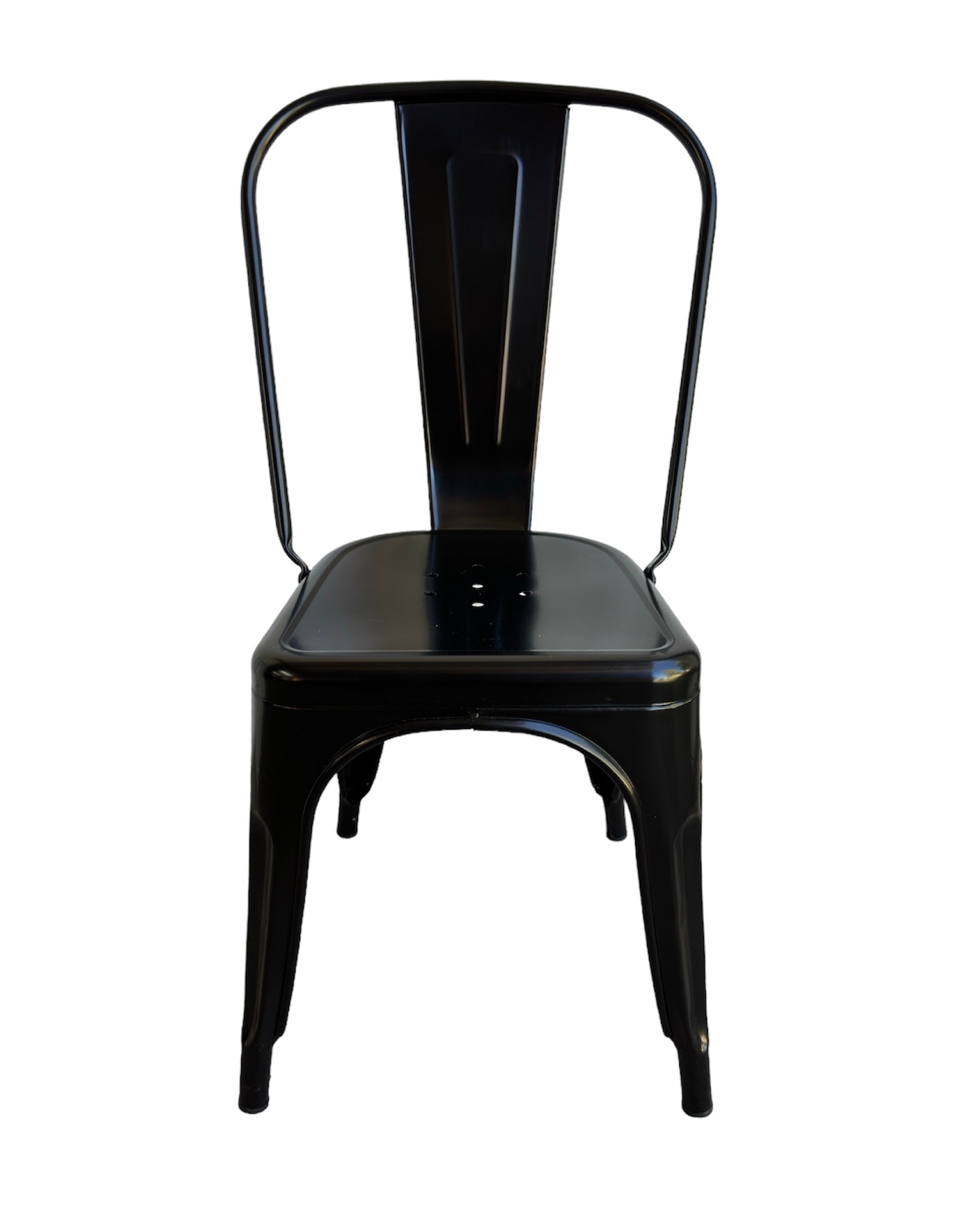 La silla Tolix es un clásico del diseño industrial que aporta carácter y funcionalidad a cualquier ambiente. Fabricada en acero con terminación en pintura negra, es ideal para uso en interiores y exteriores, tanto en hogares como en bares, cafés y restaurantes.